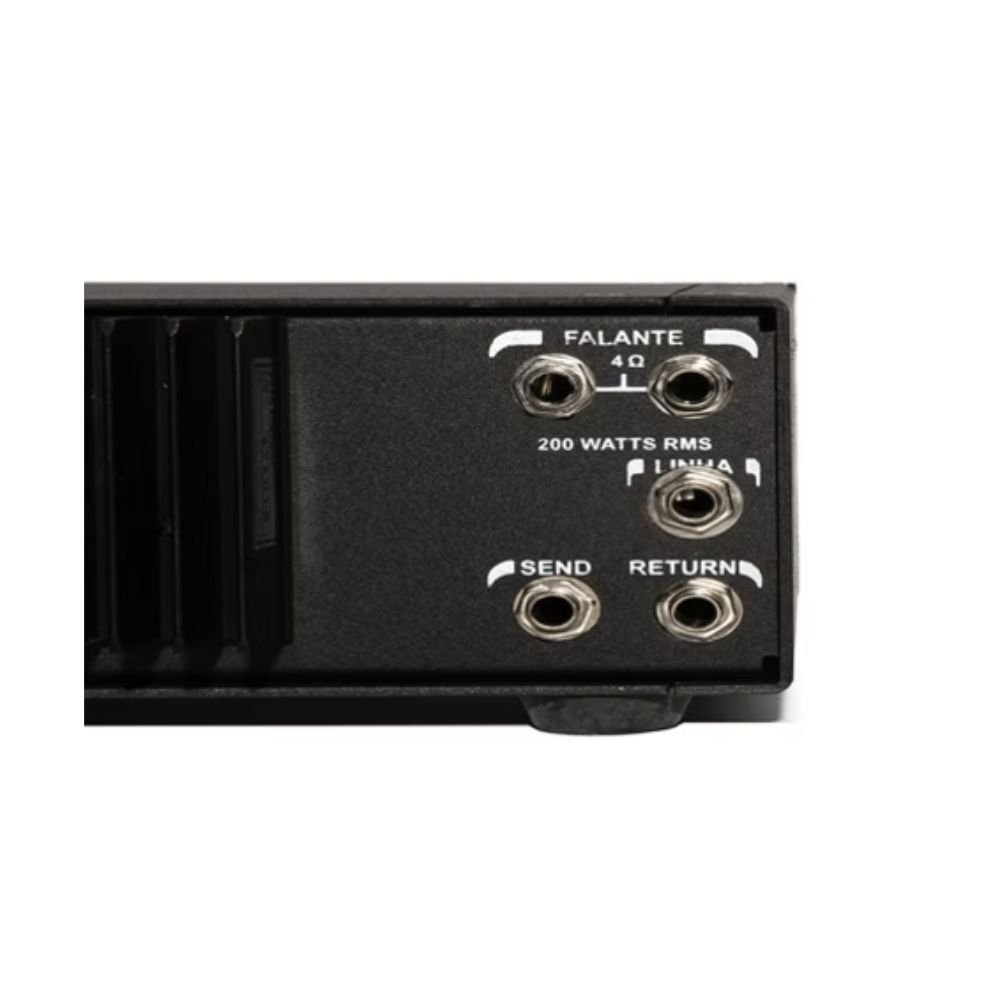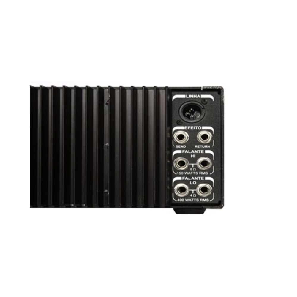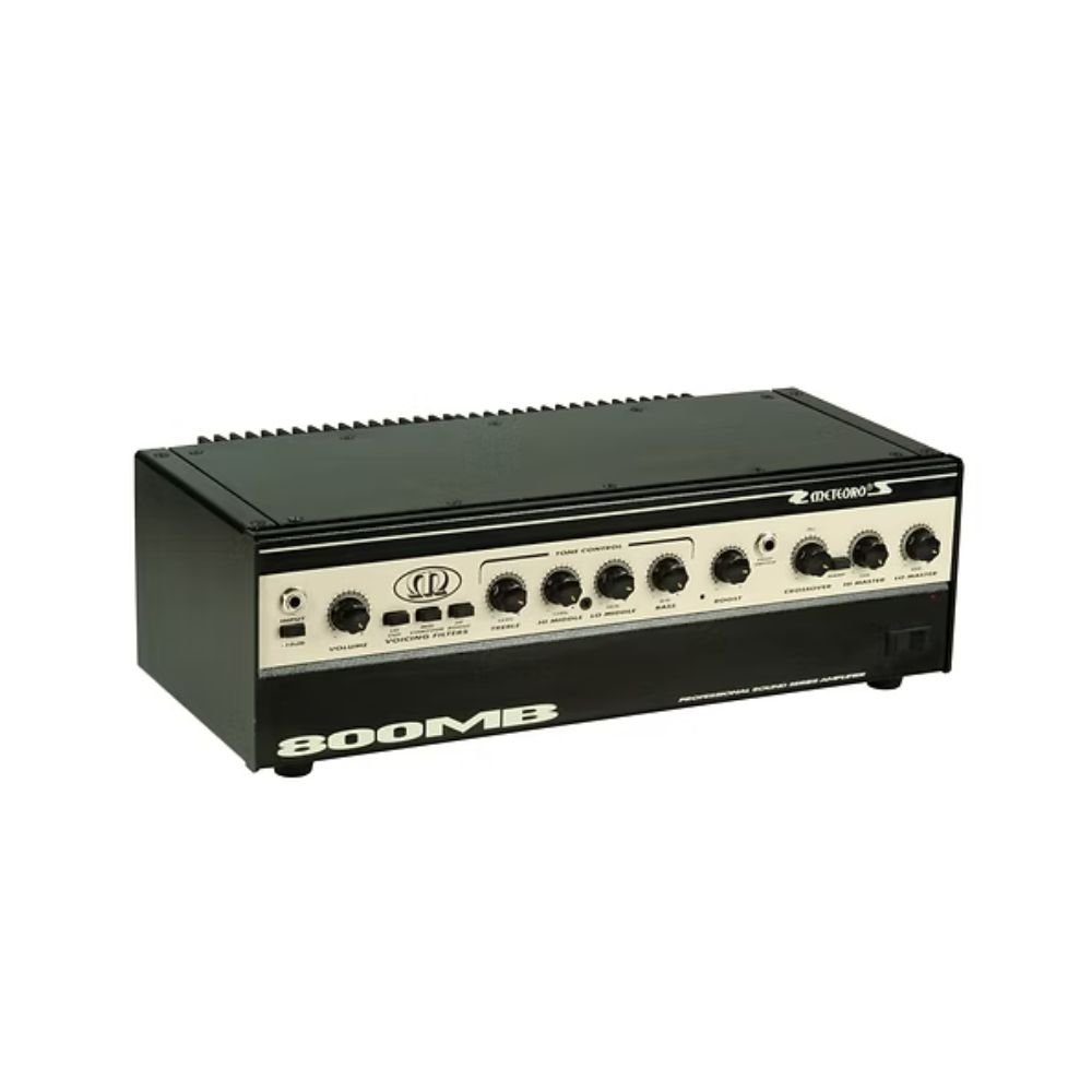A linha de cabeçotes MB da Meteoro, é muito versátil, foi criada para atender aos músicos mais exigentes. São um dos cabeçotes mais utilizados nos palcos brasileiros tem excelente punch, volume e pressão que atendem studios de gravação, ensaio e shows de médio e grande porte. Possui Voicing Filters e Crossover de duas vias Hi Master de 100 W e Lo Master de 300 W. Deve ser usado com Caixas 410 e 115 BS. Especificações: » Potência: 400 watts RMS; » 01 Entrada/Conexão para contrabaixo; » Chave de -10dB para contrabaixo ativo; » Voicing filters com chaves conjugadas de Lo Cut, Mid Contour e Hi Boost; » Treble 10 Khz ,Hi Middle 4 Khz, Lo Middle 250 Hz, Bass 60 Hz; » Effects Loop: Send/Return para ligação de efeitos externos; » Direct Out.