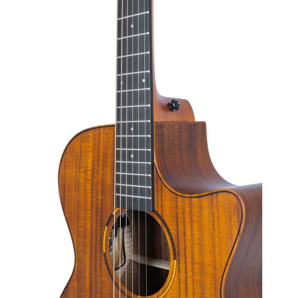 VIOLÃO MEDIUM JUMBO ELEGANCE CUTAWAY EQ AÇO T/ KOA B/S KOA SOLARIS NTOP TAGIMA